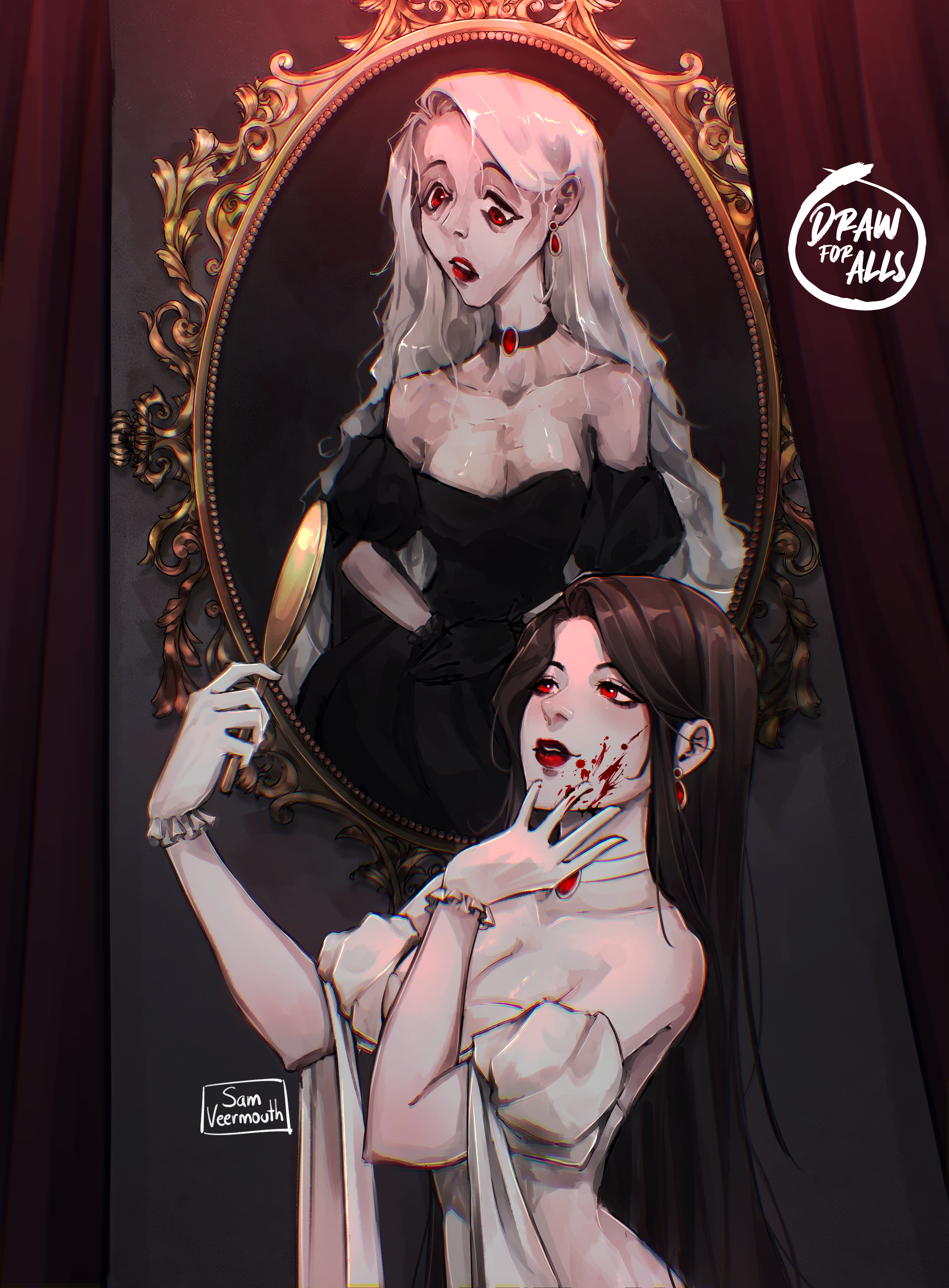 Cuando pienso en Halloween, pienso en el terror tal vez un poco perdido que representa la fecha. Por ello, quise representar una de mis novelas de terror gótico favoritas El retrato de Dorian Gray, historia donde el protagonista Dorian, que desea permanecer siempre joven y bello, tiene un retrato suyo que envejece a medida que comete actos que lo llevan a la perdición mentiras, engaños y asesinatos. En mi ilustración, coloqué a una mujer con la misma ambición de Dorian, y al cuadro deteriorando su imagen. Un clásico del terror sin duda.